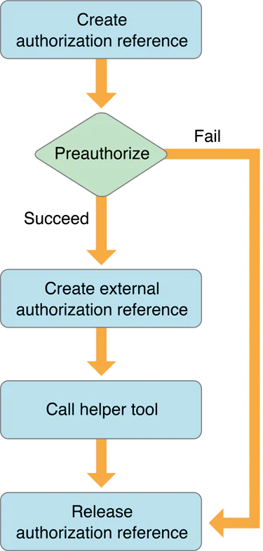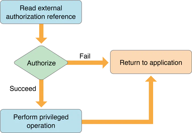 According to the official macOS documentation, the following workflow must be followed to ensure a secure authorization model: