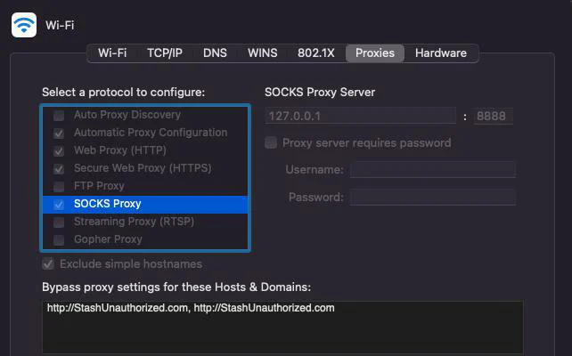 The ws.stash.app.mac.daemon.helper helper tool has a vulnerability where it fails to validate the client’s authenticity and privileges when attempting to perform an operation via XPC. As a result, it is possible to invoke multiple functions, allowing changes to system-wide network preferences as an unprivileged user, i.e., without the system.privilege.admin privilege. Likewise, there is no verification (code signing flags) process for the client attempting to connect with the helper tool. Consequently, a malicious actor can change proxy configurations (SOCKS, HTTP, HTTPS), enabling man-in-the-middle (MITM) attacks.