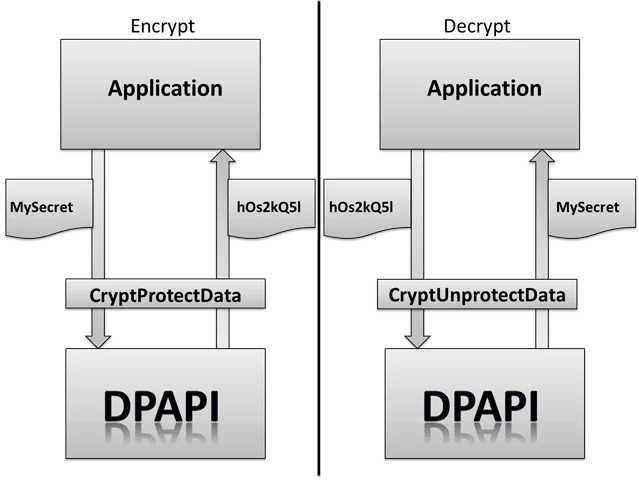 DPAPI has become very popular among developers due to its simplicity, as it only requires calling the Win32 API functions CryptProtectData and CryptUnprotectData from the Crypt32.dll library to encrypt and decrypt, respectively.