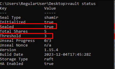 Upon initiating a new Vault process, it will be sealed by default. We can verify this by using the ‘vault status’ command or by making an HTTP GET request to the ’/sys/seal-status’ API endpoint: